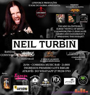 Lifeforce: confirmado show ao lado de Neil Turbin, vocalista original do Anthrax
