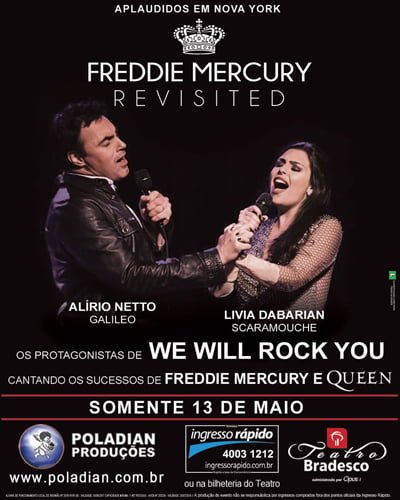 Os atores e cantores Alírio Netto (Age of Artemis, Lince, Khallice, e HeavyPop) e Livia Dabarian participam nesta quarta-feira (29/3) do programa “Todo Seu”, na TV Gazeta, à partir das 22h30, com o apresentador Ronnie Von. Alírio foi entrevistado por Ronnie Von e participou de um bate papo sobre dublagem, uso da voz e canto como profissional, entre outros assuntos. O músico também falou sobre como foi trabalhar o personagem Lefou no filme “A Bela e a Fera” da Disney. Além disso, Alírio Netto e Livia Dabarian participaram do musical cantando duas músicas que estarão presentes no show do Freddie Mercury Revisited, que acontece em São Paulo, dia 13 de maio, no Teatro Bradesco.