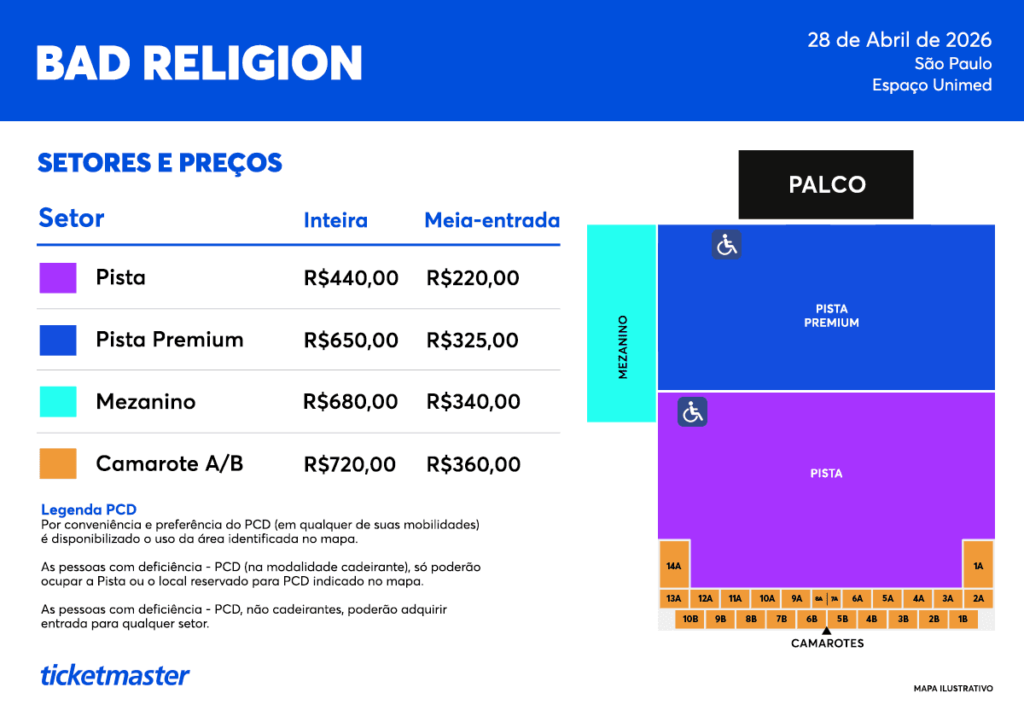 Início das Vendas: 03/02/2026 às 10h em www.ticketmaster.com.br e a partir das 11h na Bilheteria Oficial.