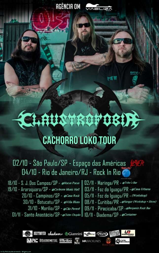 Após essas duas datas marcantes, o Claustrofobia inicia dia 18 de outubro, uma série de shows pelo país. Ao todo serão 11 datas em várias cidades distintas, atravessando estados diferentes e levando aquela energia, peso e vibração, que somente essa banda consegue entregar ao público que prestigia suas apresentações.