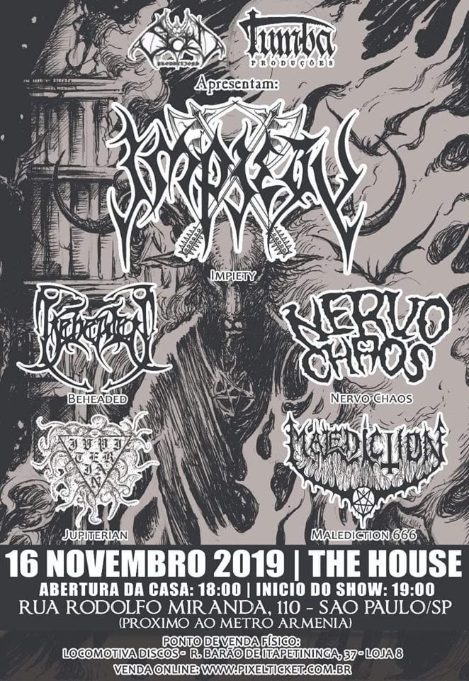 Além deles se apresentam as bandas Beheaded (Malta), NervoChaos, Jupiterian e Malediction 666. Os shows começam a partir das 17h.