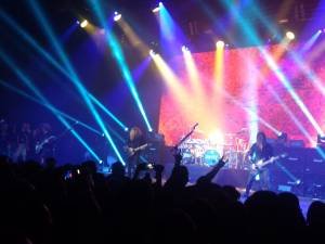 Logo depois a épica abertura, vamos com “The Threat Is Real”, música que faz parte do “Dystopia”, último disco do Megadeth e que já conta com o Brasileiro nas guitarras, a música é maravilhosa mente bem recebida por todos no local e meu amigo, o show vai seguir com um desfile de belos sons e clássicos: “In My Darkest Hour”, a maravilhosa “Take No Prisoners”, “Trust” que foi um sonzaço ao vivo.