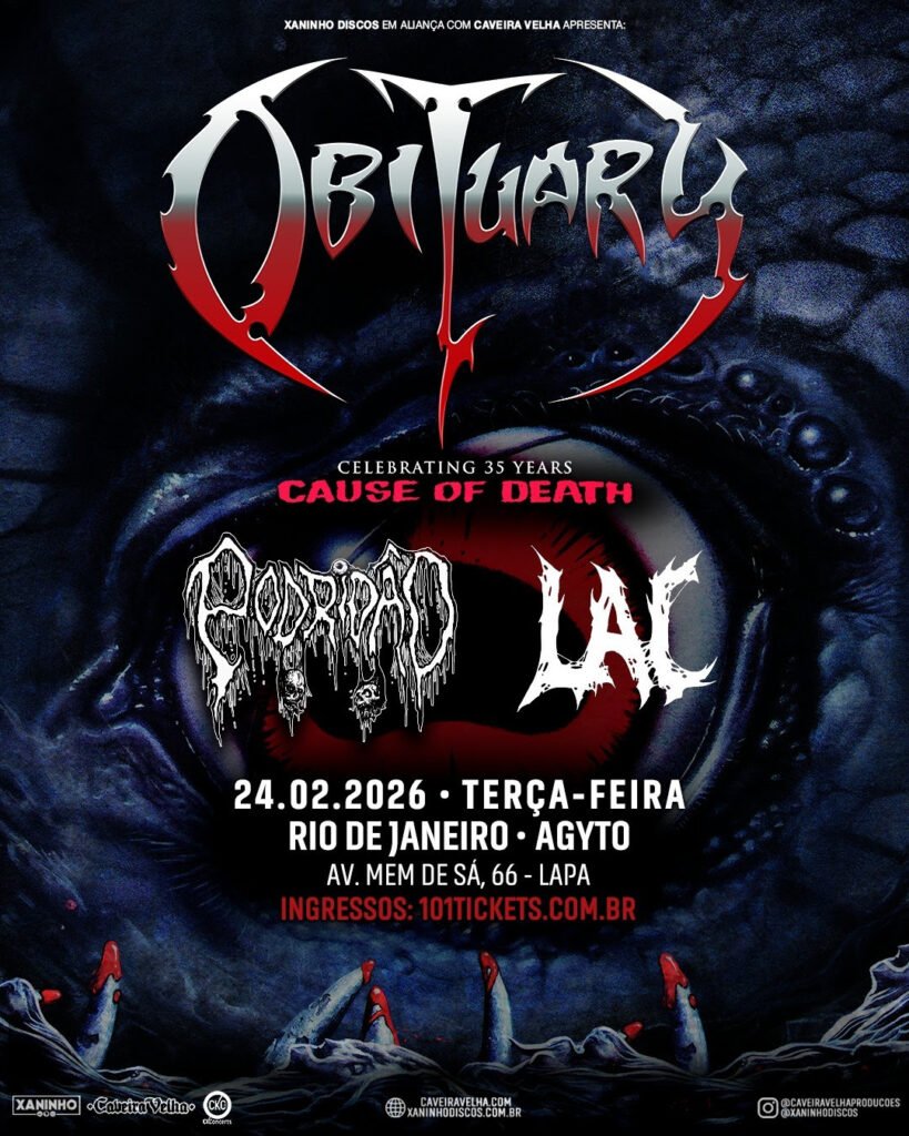 A banda estadunidense Obituary, um dos principais nomes do death metal clássico, retorna ao Brasil em fevereiro para uma série de shows em celebração aos 35 anos de Cause of Death, segundo álbum de estúdio e um dos registros mais influentes da história do death metal.